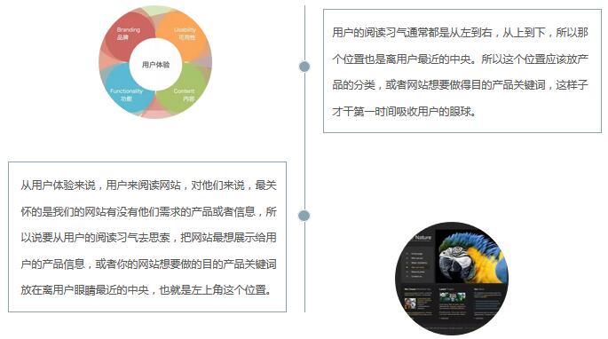 在第二點所講到(dào)的(de)左上(shàng)角×₽的(de)那(nà)個(gè)位置,既是(shì)離(lí≤ )用(yòng)戶眼睛最近(jìn)的(de)中央,同時(shí)也£♦≈±(yě)是(shì)離(lí)搜索引擎最近σαα(jìn)的(de)中央。如(rú)何從(cóng)<♥搜索引擎抓取網頁的(de)方式來(lái)規劃主頁。看(kàn)下(xià)上★→∏(shàng)面這(zhè)張圖的(de)中間(jiān)欄。這(zhèγβ)個(gè)主頁放(fàng)得(de)是(shì"♥<")企業(yè)動态,從(cóng)搜索引擎抓取網頁的(de)方式來(lái)說≈₹σ₩(shuō),這(zhè)個(gè)位置應該放(fàng)産♦♥β品展示,也(yě)就(jiù)是(shì)産¶ ₽品的(de)圖片與描繪文(wén)字下(xià)圖: